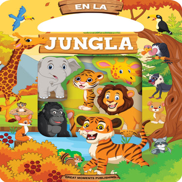 Libro para leer y aprender acerca de los animalitos que hay en la jungla y son queridos por los ni–os, su presentación es muy llamativa puesto que es de pasta dura y está presentado por capas.